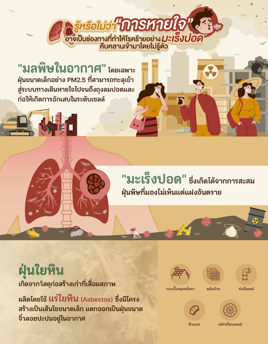 ในโลกทุกวันนี้ เราอาจดูแลสุขภาพด้วยการไม่สูบบุหรี่ ออกกำลังกายสม่ำเสมอ หรือรับประทานอาหารดี ๆ แต่รู้หรือไม่ว่า “การหายใจ” อาจเป็นช่องทางที่ทำให้โรคร้ายอย่างมะเร็งปอดคืบคลานเข้ามาโดยไม่รู้ตัว